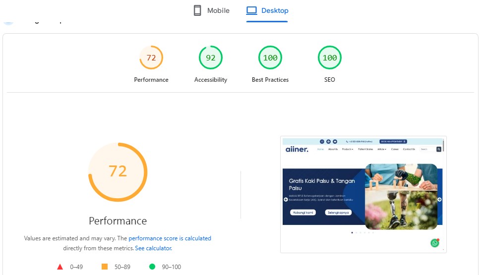 Gambar 4 – PageSpeed Insight Untuk Mobile & Desktop Version